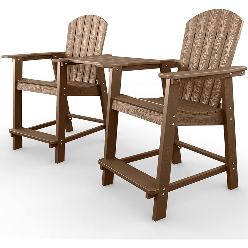 Perfect for high balconies or patio bar setups, this tall Adirondack chair set includes a built-in side table for drinks or snacks. It’s a stylish and practical solution for limited spaces where every inch counts.