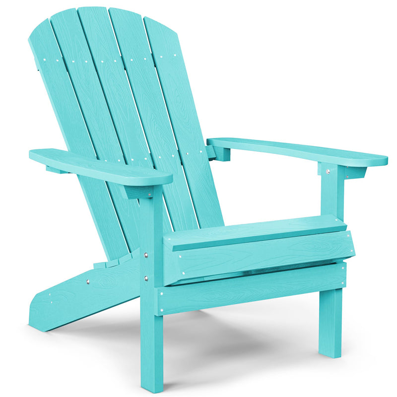 This timeless Adirondack chair is crafted from durable, weather-resistant HIPS plastic that mimics the look and texture of real wood. Its bold blue color adds a pop of vibrance to any setting, and the wide backrest and contoured seat provide ergonomic support.