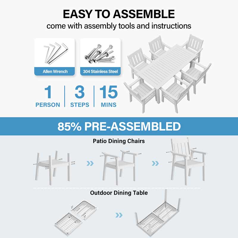 YEFU®︎ HIPS Patio Table Set 7 Piece White
